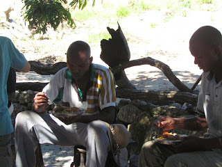 Thulani slicing one of our local wild watermelons. If you've not have had a watermelon in a very long time you would enjoy it. Normal watermelons just don't want to grow here. They all rot up and hardly get bigger than your fist. But these local watermelons grow like weeds.